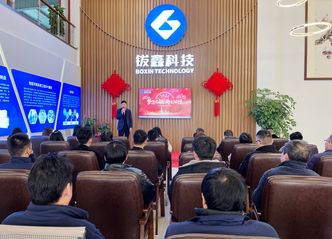刘训春代表公司对2021年度工作进行了总结,并对2022年度工作开展进行部署。他表示,2021年钹鑫科技度过了不平凡的一年,从4月份工厂搬迁到现在拥有1500多平米办公场地及展示中心,3000多平方米的标准厂房,8条生产装配线,月除湿机生产能力达50-60台,全体职工付出了努力,体现出了顽强拼搏的奋斗精神,代表公司表示诚挚的感谢!展望未来,2022年是钹鑫科技重要发展的一年,在新能源、医药、电子等行业领域,将以客户为中心,稳扎稳打、苦练内功、迎难而上、拼搏进取。钹鑫科技作为智能环境系统工程EPC服务商,高端智能除湿设备生产制造商,我们要充满必胜的信心和奋进的力量,抓住机遇,开拓思路,实践探索,为客户提供更及时、更高效、更便捷的服务。